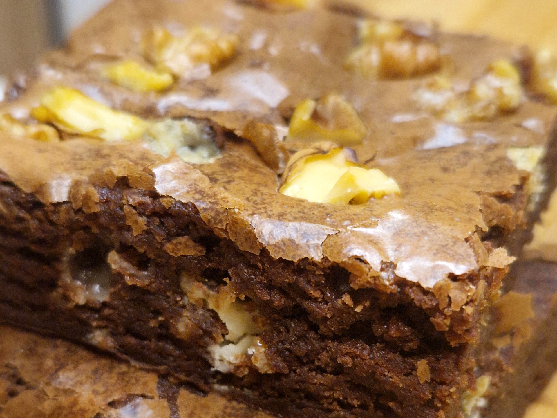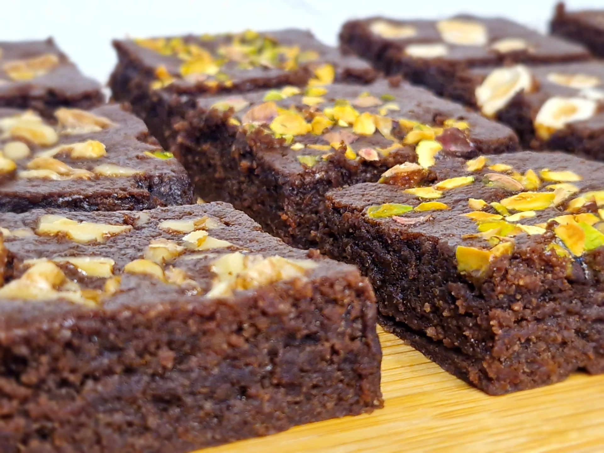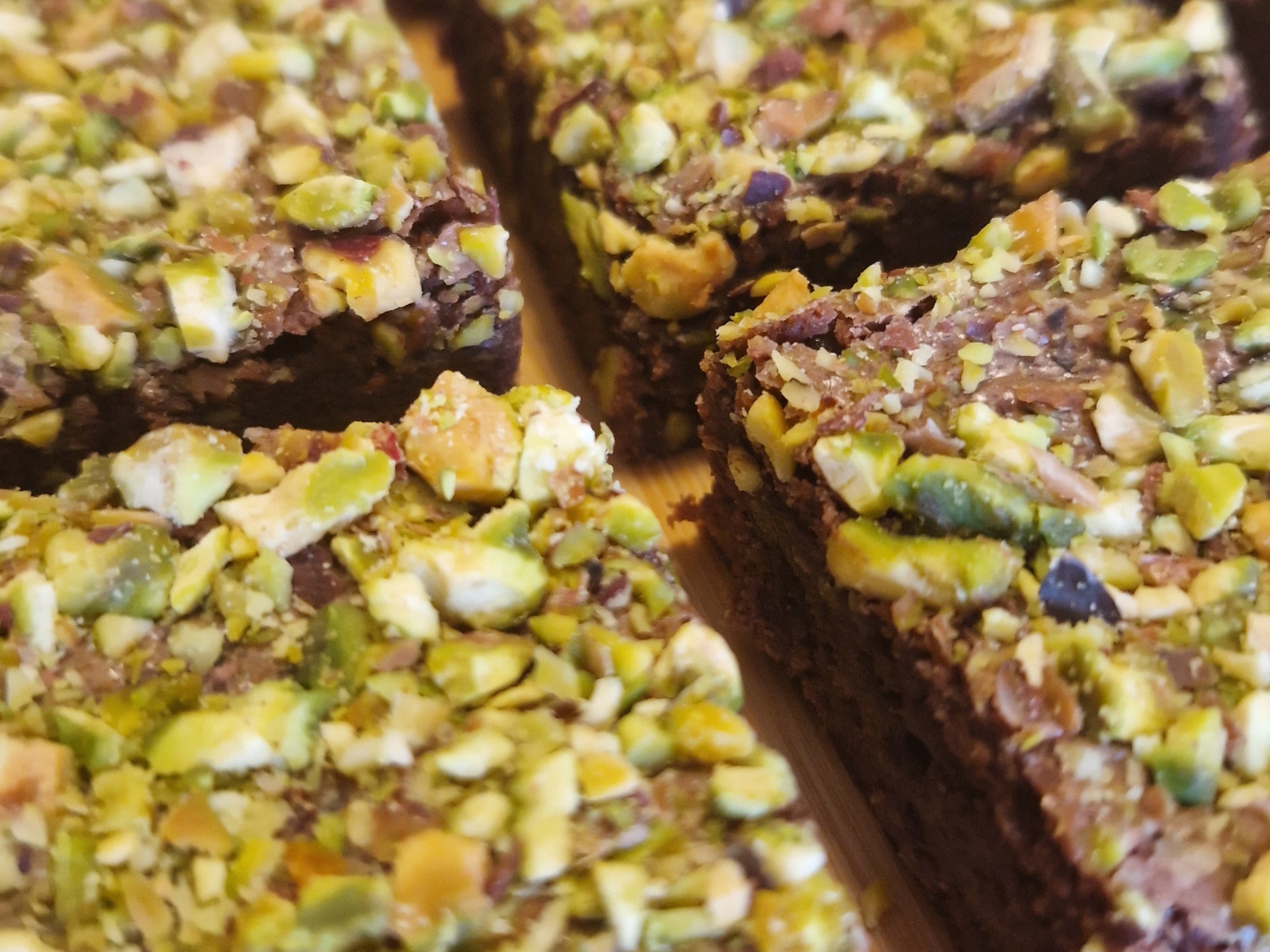 Brownie with crunchy pistachio pieces, full of flavor in every bite.
