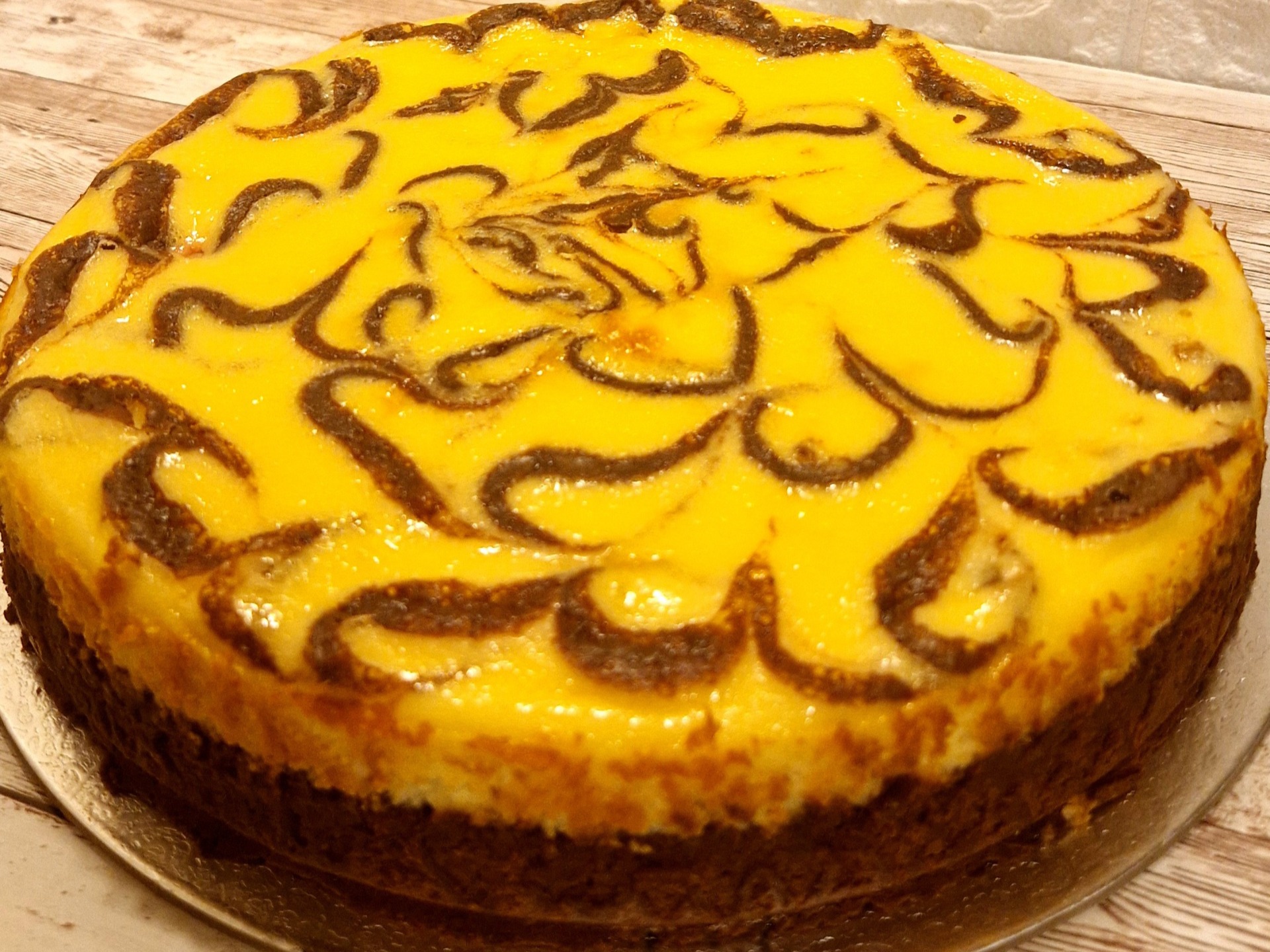 Brownie and creamy cheesecake, with a special touch of raspberries incorporated into the dough.